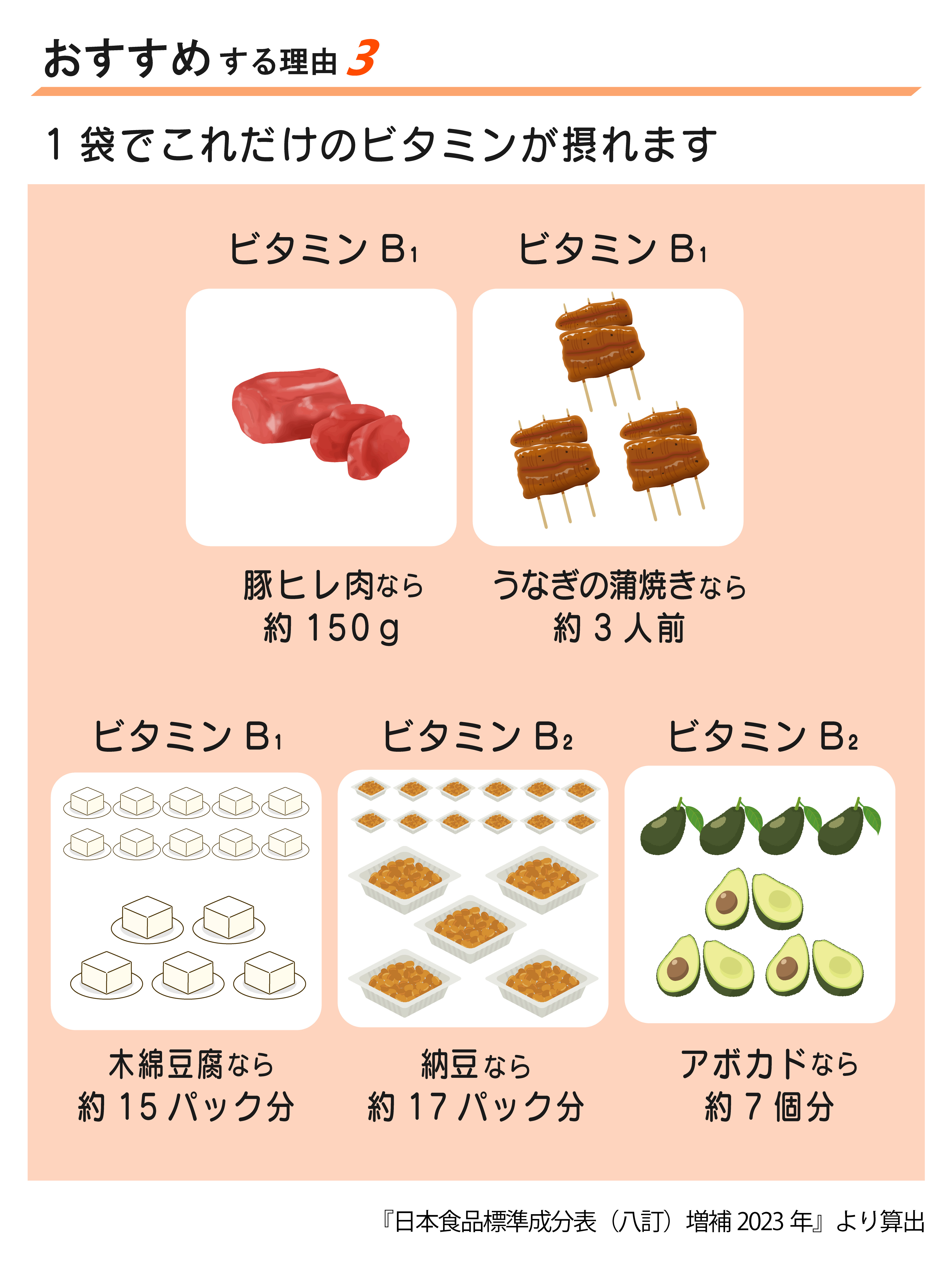 エネルギー 39 ㎉、タンパク質 0.9 g、脂質 0.2 g、炭水化物 8.4 g、食塩相当量 0.03 g、ビタミンB1 2.0 ㎎、ビタミンB2 2.0 ㎎